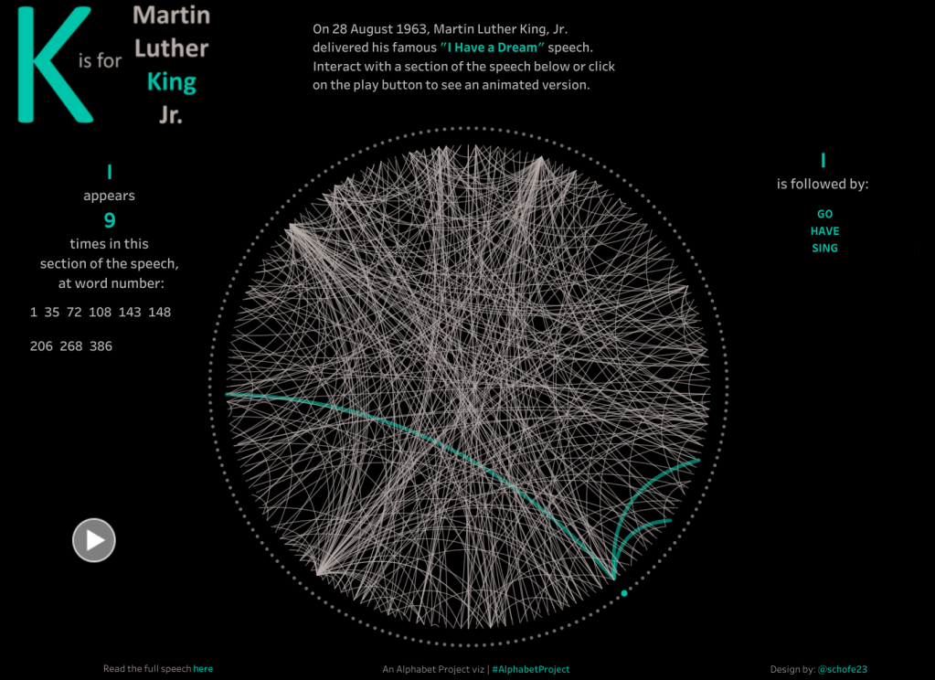 I’d seen this post from Ken Flerlage and loved the circular link diagram that he created to show the flow of words in the US Constitution.